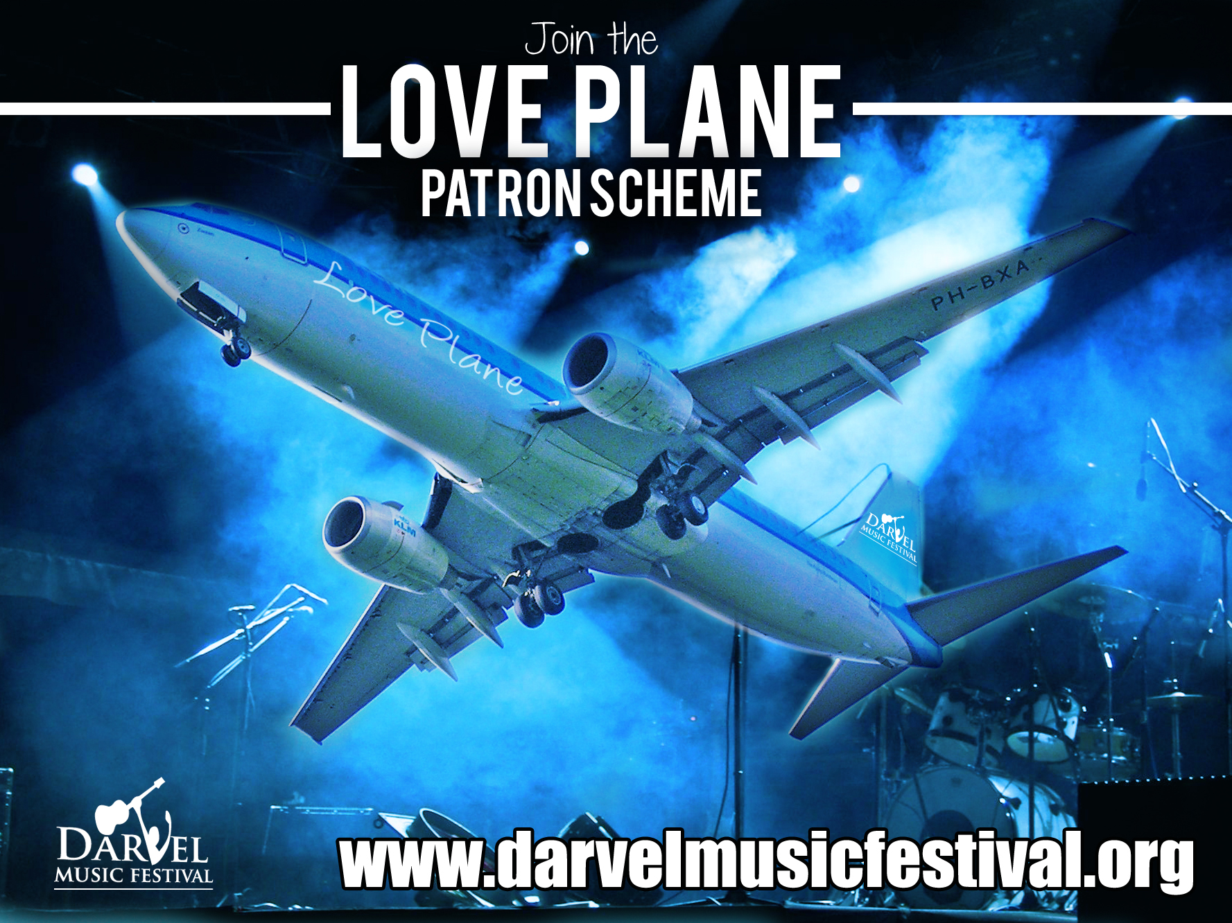Thanks to the generosity of music fans across the globe our 2014 'Love Train' Patron Scheme was a resounding success and for this we are most grateful as all monies received went towards our fund raising initiatives and ensured that our Community-led concerts continued successfully throughout last year. 2015 and a NEW patron scheme is now taking off from an airport near you! The Darvel 'Love Plane' is ready for boarding so please help us once again by joining our passenger list of patrons and donating whatever you can whether it be Economy, Business or First Class! Simply click on Festival Shop and choose Festival Patrons. No matter how much you can afford it all helps - So thank you and enjoy the flight! - The Darvel Cabin Crew