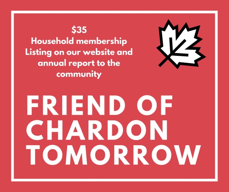 Support Chardon Tomorrow at our base household membership, receive a listing on our website/annual report.
